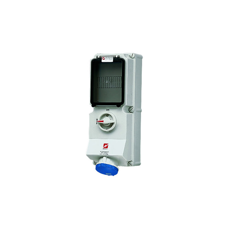 PRISE MURAL CEE 16A 3P 6H 230V IP44, AVEC INTERRUPTEUR ON/OFF.ET VERROUILLAGE MECANIQUE DUO.AVEC RAIL-DIN.