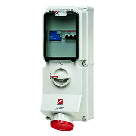 DUO PRISE MURALE 63A5P6H400V ROUGE IP44