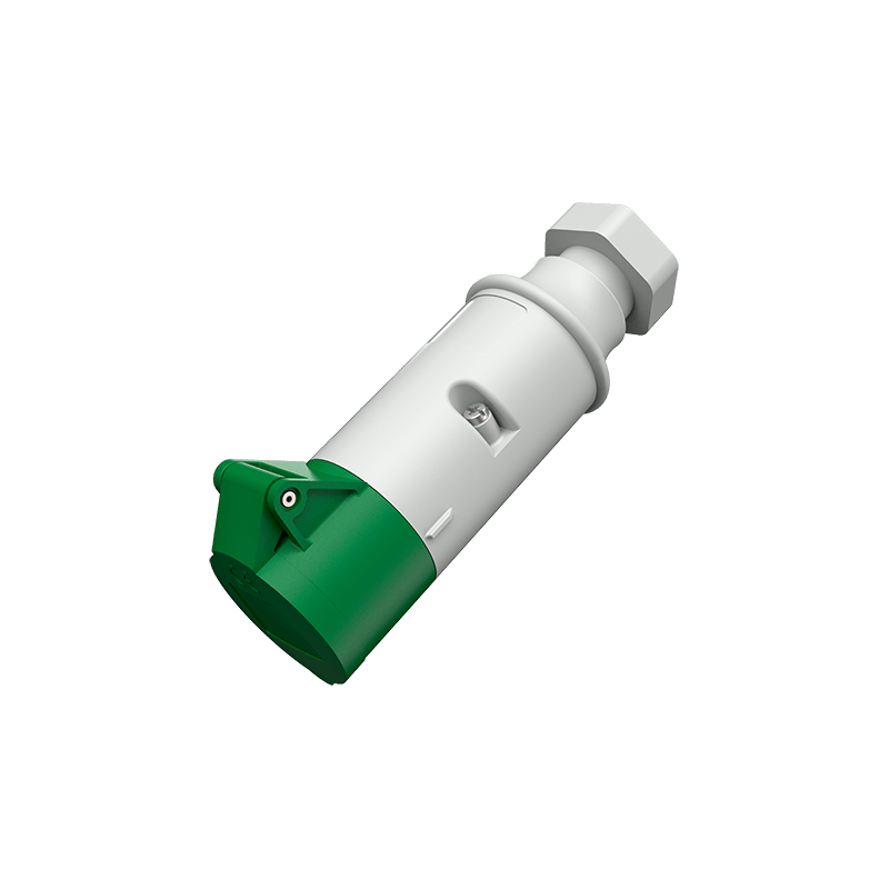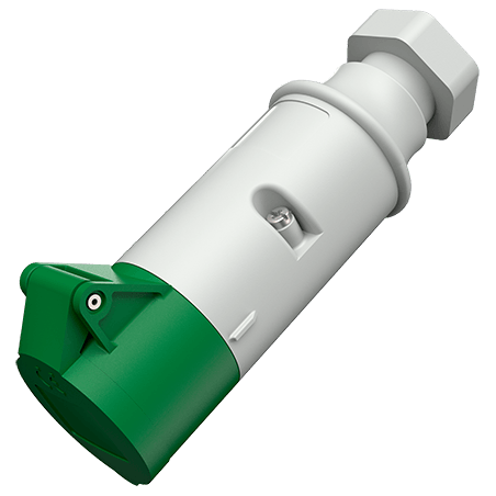 COUPLEUR CEE 16A 3P 4H 20-25, 40-50V IP44.100-200 HZBORNES A VIS.PRESSE-ETOUPE AVEC JOINT.ARRET DE TRACTION AVEC PROTECTION CONTRE PLIAGE.ENVELOPPE GRIS CLAIR, COULEUR CODIFIEE VERTE.