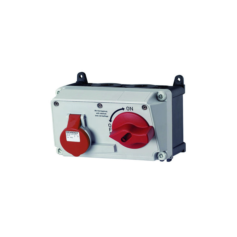 PRISE MURAL CEE 16A 5P 6H 400V IP44, AVEC INTERRUPTEUR ON/OFF.ET VERROUILLAGE MECANIQUE DUO.