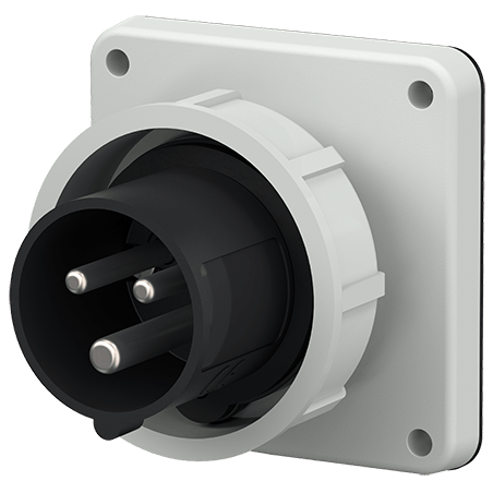 FICHE D'APPAREIL CEE 32A 4P 7H 500V IP67.ENVELOPPE NOIRE AVEC DIMENSIONS DE LA BRIDE A X B: 75 X 75 MM ET TROUS DE LA BRIDE D X E: 60 X 60 MM.UN JOINT EST FOURNI POUR L'INSTALLATION ENTRE LA BRIDE ET LE PANNEAU.CONTACTS NICKELES.BORNES A VIS POUR SECTION