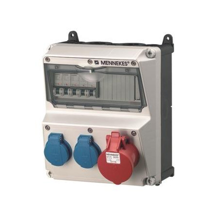 COMBINÉ DE PRISES DE COURANT AMAXX.COFFRET PLOMBABLE EN AMAPLAST, DIMENSIONS 260 X 225 MM HAUTEUR X LARGEUR ET AVEC UN DEGRÉ DE PROTECTION IP44.BASE NOIR ET COUVERCLE DAVANT À CHARNIÈRE EN GRIS CLAIR FIXÉ AVEC DES VIS À DOUBLE FILETAGE.FIXATIONS INTERN