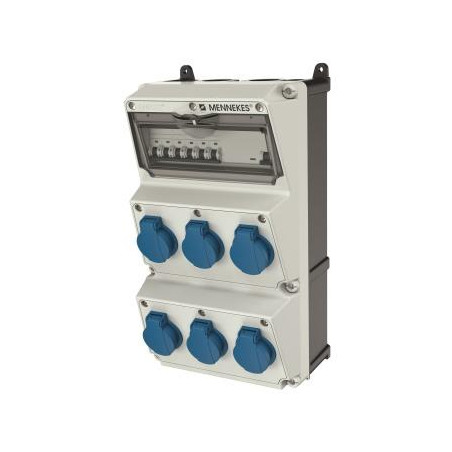 COMBINE DE PRISES DE COURANT AMAXX.COFFRET PLOMBABLE EN AMAPLAST, DIMENSIONS 520 X 225 MM (HAUTEUR X LARGEUR) ET AVEC UN DEGRE DE PROTECTION IP67.BASE NOIR ET COUVERCLE D'AVANT A CHARNIERE EN GRIS CLAIR FIXE AVEC DES VIS A DOUBLE FILETAGE.FIXATIONS INTERN
