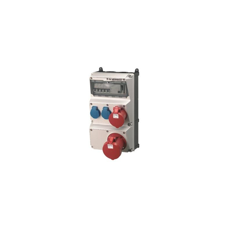 COMBINE DE PRISES DE COURANT AMAXX.COFFRET PLOMBABLE EN AMAPLAST, DIMENSIONS 390 X 225 MM (HAUTEUR X LARGEUR) ET AVEC UN DEGRE DE PROTECTION IP44.BASE NOIR ET COUVERCLE D'AVANT A CHARNIERE EN GRIS CLAIR FIXE AVEC DES VIS A DOUBLE FILETAGE.FIXATIONS INTERN
