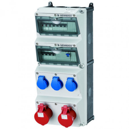COMBINE DE PRISES DE COURANT AMAXX.COFFRET PLOMBABLE EN AMAPLAST, DIMENSIONS 520 X 225 MM (HAUTEUR X LARGEUR) ET AVEC UN DEGRE DE PROTECTION IP44.BASE NOIR ET COUVERCLE D'AVANT A CHARNIERE EN GRIS CLAIR FIXE AVEC DES VIS A DOUBLE FILETAGE.FIXATIONS INTERN