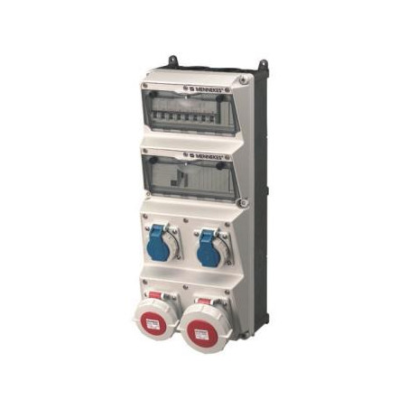 COMBINE DE PRISES DE COURANT AMAXX.COFFRET PLOMBABLE EN AMAPLAST, DIMENSIONS 520 X 225 MM (HAUTEUR X LARGEUR) ET AVEC UN DEGRE DE PROTECTION IP67.BASE NOIR ET COUVERCLE D'AVANT A CHARNIERE EN GRIS CLAIR FIXE AVEC DES VIS A DOUBLE FILETAGE.FIXATIONS INTERN