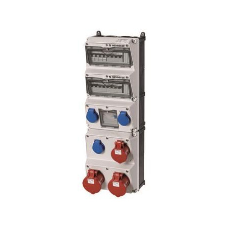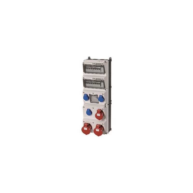 COMBINE DE PRISES DE COURANT AMAXX.COFFRET PLOMBABLE EN AMAPLAST, DIMENSIONS 650 X 225 MM (HAUTEUR X LARGEUR) ET AVEC UN DEGRE DE PROTECTION IP44.BASE NOIR ET COUVERCLE D'AVANT A CHARNIERE EN GRIS CLAIR FIXE AVEC DES VIS A DOUBLE FILETAGE.FIXATIONS INTERN