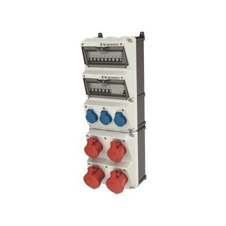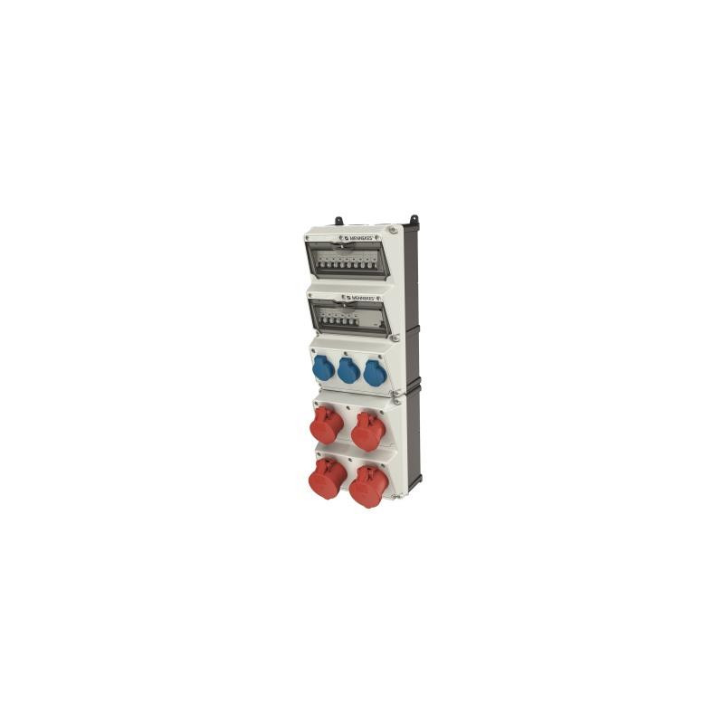 MENNEKES RECEPTACLE COMBINATION UNIT AMAXX READY WIRED FOR INSTALLATION ENCLOSURE PROTECTION TYPE IP 44ENCLOSURE:1 AMAPLAST-ENCLOSURE 650 X 225 MM (H X W) LEAD-SEALABLE, FOR INTERNAL OR EXTERNAL FIXINGBLACK BASEFRONT COVER ELECTRIC GREY RAL 7035 HINGED CO