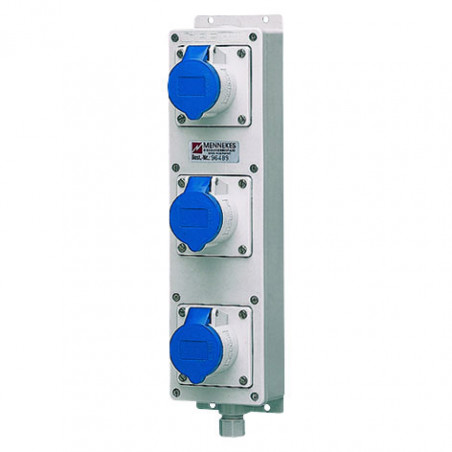 REGLETTES DE PRISES DE COURANT IP44: NYLON, ROBUSTES, RESISTANTS AUX CHOCS, PRECABLEES AVEC BORNIER, PRESSE-ETOUPE, ARRET DE TRACTION. 3 CEE 16A 3P 6H230V