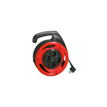 Description: Enrouleur domestique moyenne capacite 4 prise 2 P T avec disjoncteur thermique a rearmement manuuel - 1016 A - 250 V - cable de 15 m 3G 15 mm2