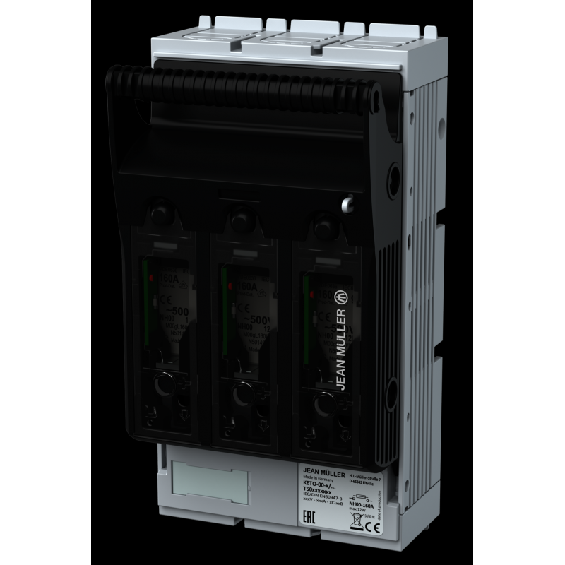 KETO-00-3/F/ESL - SECTIONNEUR-FUSIBLES POUR CARTOUCHES FUSIBLES À COUTEAUX HPC TAILLE NH00, T00, 160A, 3P, M8X16, SURVEILLANCE DIODES LED / DEL DÉTECTION DE FUSION FUSIBLE