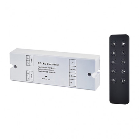 Contrleur RGB 24Vdc livré avec télécommande.Fonctions ON/OFF, pause, mode, vitesse et intensité.Portée de la télécommande 25m.Convertisseur 24Vdc à commander séparément.