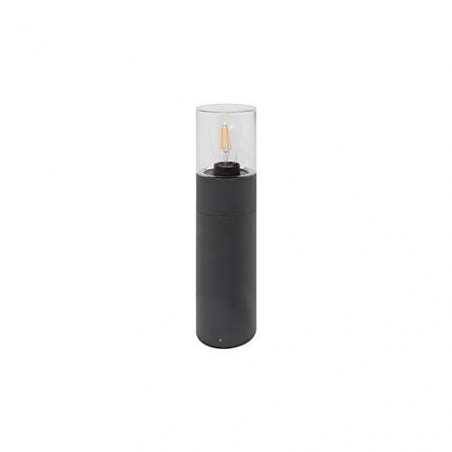 Borne ronde pour éclairage extérieur.Corps anthracite et diffuseur en verre clair.Lampe E27 à commander séparément.