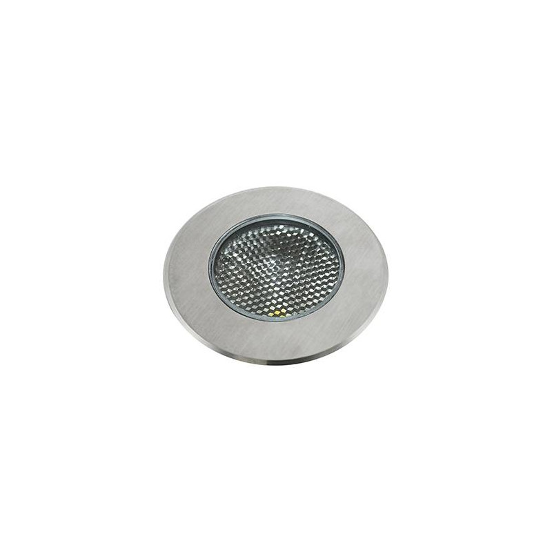 Encastré de sol rond.Carrossable résistance 1500kg.Avec grille nid dabeille amovible.Boîtier dencastrement et 1.00m de câble fournis.Dimmable.