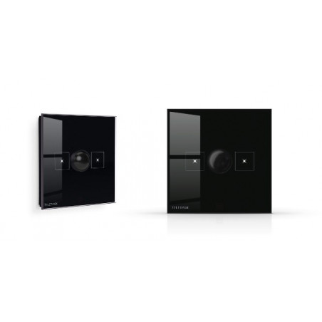 PANNEAU TACTILE EN VERRE - PERLE DOUCE (VERRE DE SECURITE AVEC UNE IMPRESSION CERAMIQUE DURCIE A 800 C) AVEC 2 BOUTONS, UN DETECTEUR DE MOUVEMENT ET UN CAPTEUR DE LUMINOSITE INCORPORE. LE DETECTEUR DE MOUVEMENT A UN ANGLE DE VISION HORIZONTAL DE 100 DEGRE