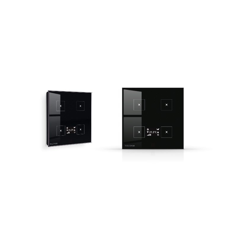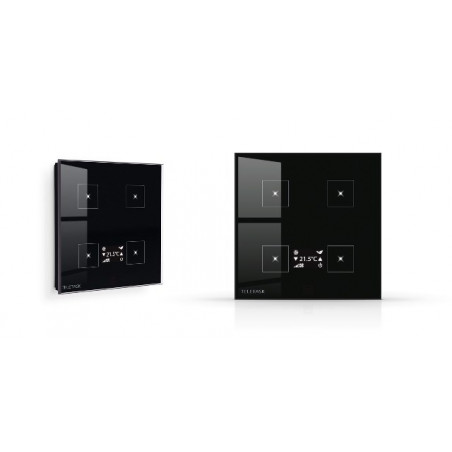 PANNEAU TACTILE EN VERRE - PERLE DOUCE VERRE DE SÉCURITÉ AVEC UNE IMPRESSION CÉRAMIQUE DURCIE À 800C AVEC 4 BOUTONS. AVEC PETIT ÉCRAN OLED POUR LE CONTRLE DE LA TEMPÉRATURE DANS UNE PIÈCE.CHAQUE BOUTON A UN LED BLANC DE RÉTROACTION ET ÉCLAIRAGE NOCTUR