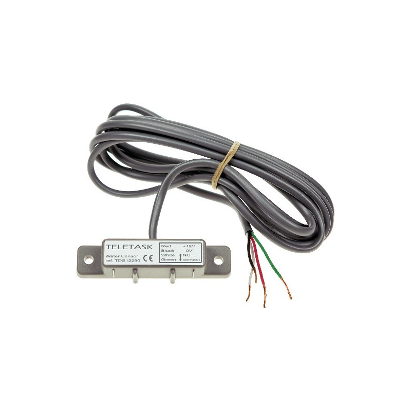 CAPTEUR POUR DÉTECTER LA PRÉSENCE DEAU PAR SUITE DUNE FUITE. UNIQUEMENT POUR UTILISATION À LINTÉRIEUR ET À TEMPÉRATURE 0CLE CAPTEUR EST INSTALLÉ JUSTE AU DESSUS DU NIVEAU DE SOL.LE CAPTEUR EST RACCORDÉ AU SYSTÈME DOMOTIQUE TELETASK VIA UNE ENTRÉE NU