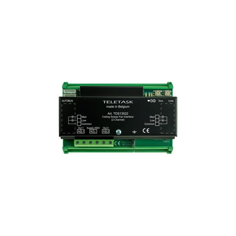 LINTERFACE POUR VENTILATEUR DE PLAFOND EST UN DISPOSITIF SUR RAIL DIN QUI PERMET DE CONTRLER JUSQUÀ DEUX VENTILATEURS DE PLAFOND TRADITIONNELS FONCTIONNANT EN 100-250V AC.LE CONTRLE DE LA VITESSE EST RÉALISÉ EN COMMUTANT DES CONDENSATEURS SPÉCIFIQUES