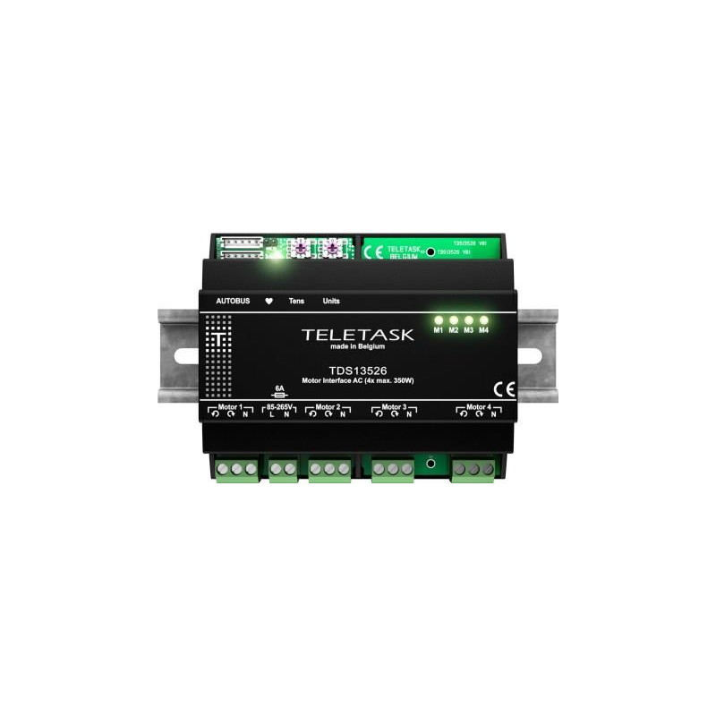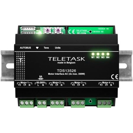 INTERFACE DE MOTEUR POUR LA COMMANDE DE 4 MOTEURS 230V AC MAX. 350W PAR MOTEUR.POUR RÉDUIRE LA CONSOMMATION DÉNERGIE, LES RELAIS INTERNES BASCULENT DANS UN MODE FAIBLE PUISSANCE APRÈS QUILS ONT CHANGÉ DÉTAT. AVEC LA DÉTECTION DE FONCTIONNEMENT DU MOT