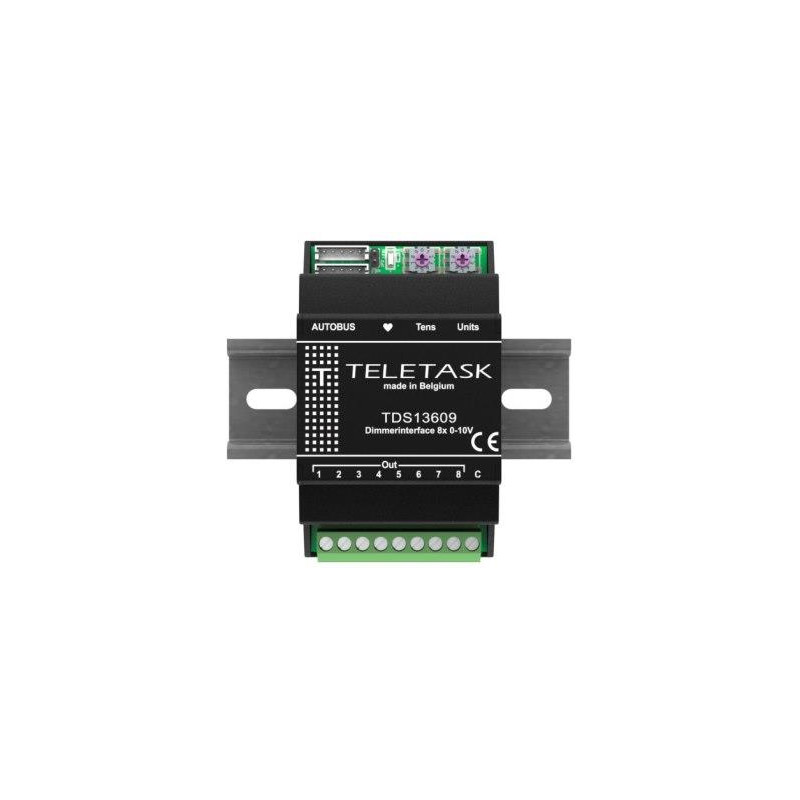 INTERFACE DE SORTIE VARIATEUR AVEC 8 SORTIES ANALOGIQUES 0-10 V POUR CONTRLER DES VARIATEURS DE PUISSANCE AVEC DES ENTRÉES 0-10 V GALVANIQUEMENT ISOLÉES.DIMENSIONS 54L X 90H X 60P MM - DIN 3TE