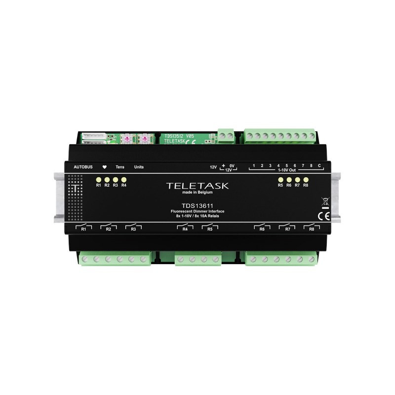 INTERFACE DE VARIATEUR 8 SORTIES ANALOGIQUES 1-10V POUR LA GESTION DES ECLAIRAGES EN VARIATION 1-10V. L'INTERFACE DISPOSE EGALEMENT DE 8 RELAIS PERMETTANT DE COMMUTER L'ALIMENTATION DES 8 CIRCUITS D'ECLAIRAGE EN VARIATION.LES SORTIES ANALOGIQUES PEUVENT E