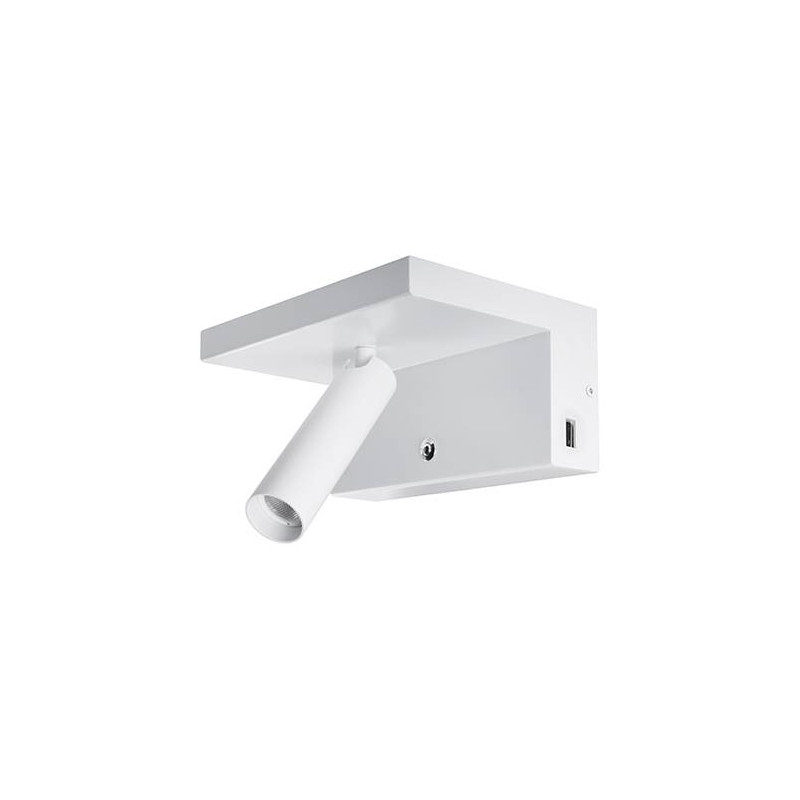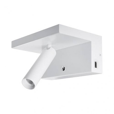 Applique murale décorative.Base apparente avec interrupteur permettant trois niveaux déclairement 25, 50 et 100 et deux prises USB 5VDC, 2A.Convertisseur non dimmable intégré dans lappareil.