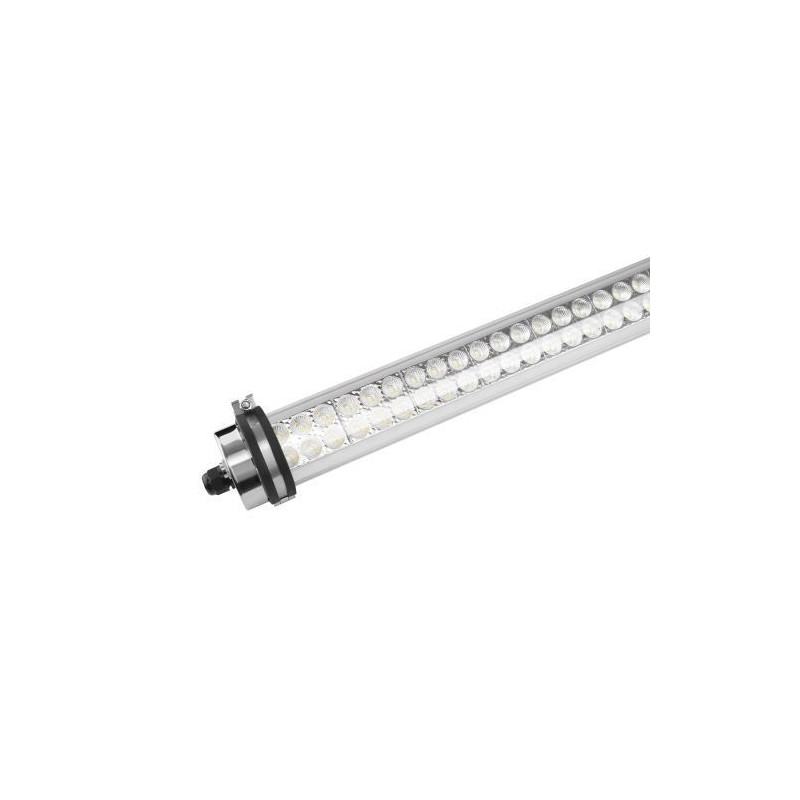 Protect est un appareil tubulaire avec un protection IP69K équipé avec des embouts en acier inoxydable L316 et de supports de montage à clipser. Protect est livré avec un câblage traversant de 3G1,5mm pour un assemblage en ligne facile et rapide. Grâce aux terminaux sans outils des deux ctés avec presse-étoupes en nylon et les supports de montage clipsables, cet appareil peut être installé en un tournemain. Le diffuseur opale en PC garantit une résistance aux chocs de IK10 et rend cet appareil adapté à lanti-vandalisme et aux applications dans les garages et les ateliers. Loptique interne avec lentille garantit un faible éblouissement UGR19. La soupape de purge intégrée réduit le risque de vapeur dhumidité et augmente la durée de vie des joints. Avec unité de secours autotest et batteries LiFePO respectueuses de lenvironnement, autonomie de 3 heures. Sortie en mode urgence 5W 652,9lm.