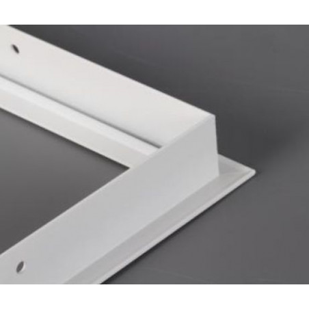 Cadre encastré en aluminium pour faux pladonds blanc RAL9016 pour panneau LED 1195x295. Taille extérieure 1230x330x27mm. Épaisseur maximale du plafond 25 mm.