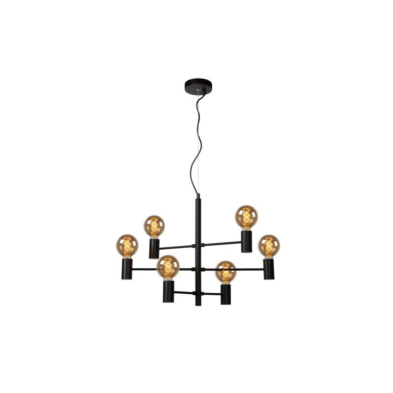 LEANNE Suspension-Noir-6xE27-40W-Métal