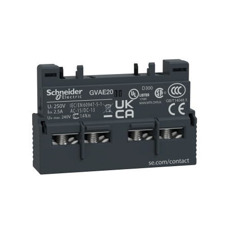 Contact auxiliaire frontal integrable 2 NO pour GV2