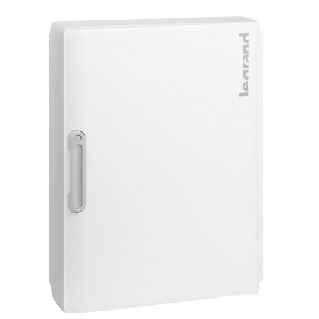 Description: Coffret saillie XL3 125 - 3 rangees de 18 modules - 54 modules - avec porte opaque blanche - IP40 - IK 09 - blanc RAL 9003 - chassis extratible et pivotant