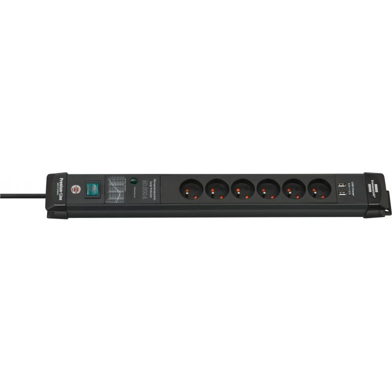 PROLONGATEUR MULTIPRISE PREMIUM-LINE AVEC PARASURTENSEUR 60.000A AVEC CHARGEUR USB 6 PRISES NOIR 3M H05VV-F 3G1,5 *BE*