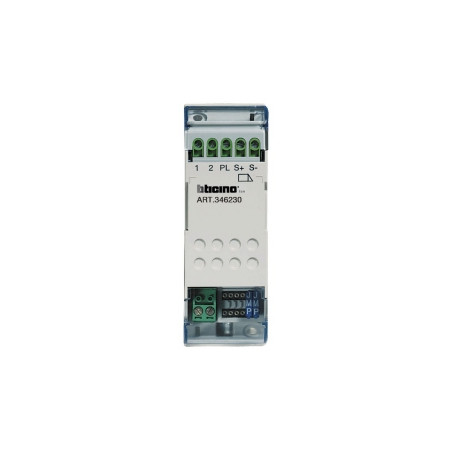 Marque: Bticino (Legrand)Référence: 346230EAN: 8012199450810Emballage: 1/43/430Description: Relais pour gache - pour installation audio systeme 2 fils - 2 modules DIN