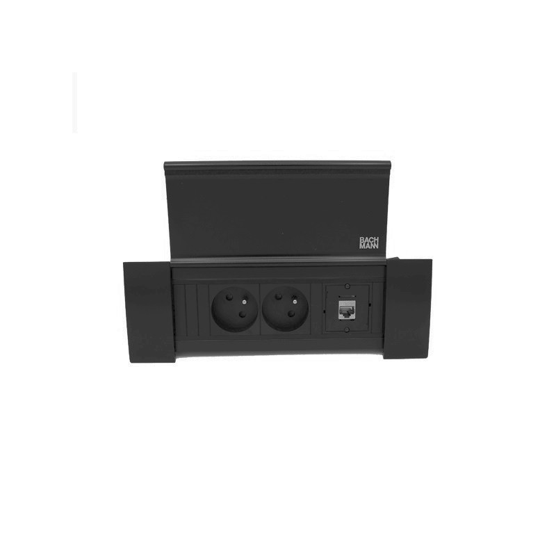 POWER FRAME COVER 3 modules 2x UTE 1xCAT6 A noir RAL9005
