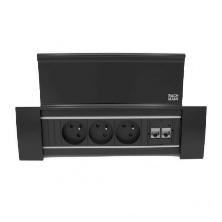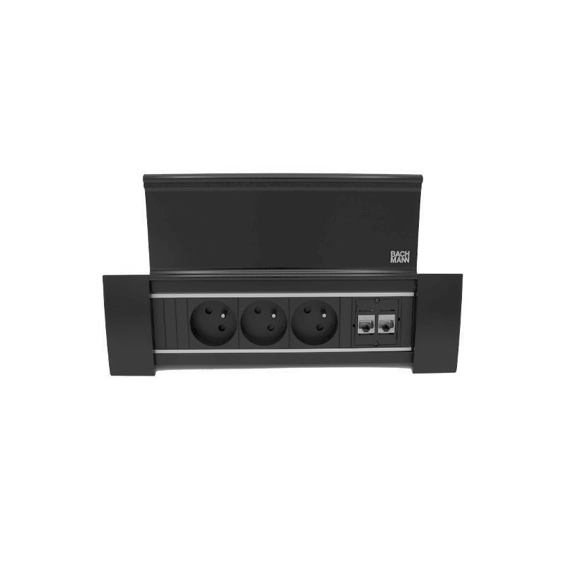 POWER FRAME COVER 4 modules 3x UTE 2x CAT6 A noir RAL9005
