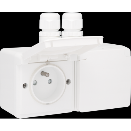 PRISE DOUBLE HORIZONTALE ETANCHE AVEC BROCHE DE TERRE VIS