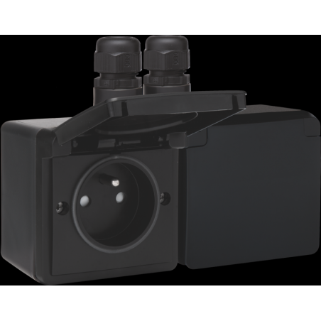 PRISE DOUBLE HORIZONTALE ETANCHE AVEC BROCHE DE TERRE VIS