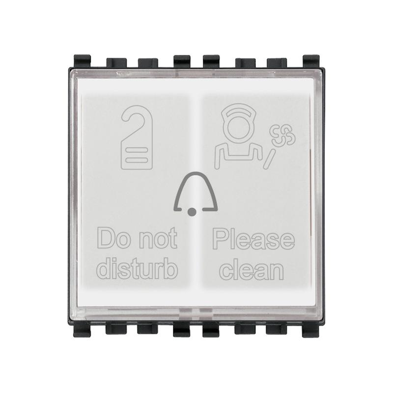 Emballage :1Marque: VimarDescription: EIKON - drukknop+2hotel controlelampjes 230V