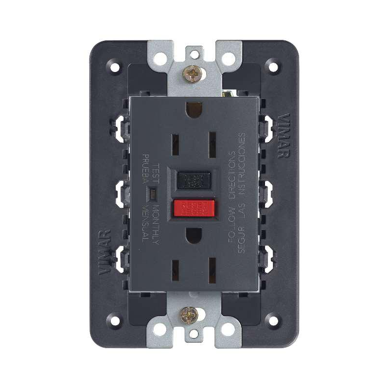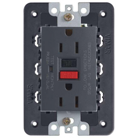 Emballage :1Marque: VimarDescription: EIKON - 2 2P+A 15A USA outlet whiteh GFCI grey