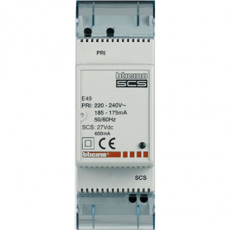 Marque: Bticino (Legrand)Référence: E49EAN: 8012199972817Emballage: AQ2/6/450Description: MyHOME - Alimentation Bus Compact 220V - 27V 06AMP