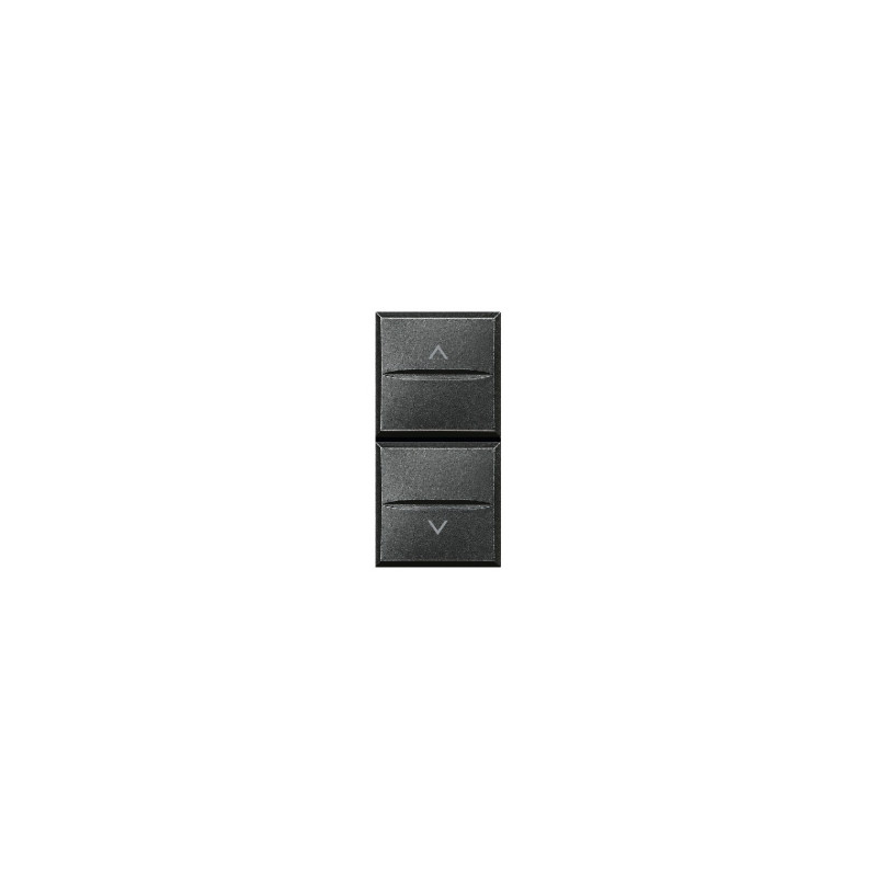 Description: Double bouton-poussoir Axolute - unipolair NO NO - avec blocage mutuel - 250 V - 10 A - gris fonce - 1 module