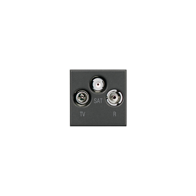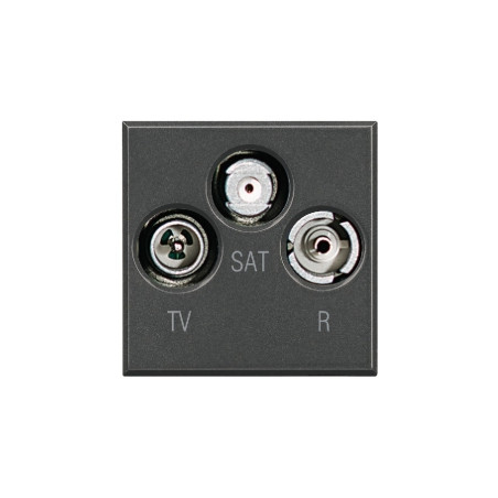 Description: Prise radio/TV/SAT Axolute - coaxiale - connecteur mâle TV - connecteurs femelles radio/SAT - gris foncé - 2 modules