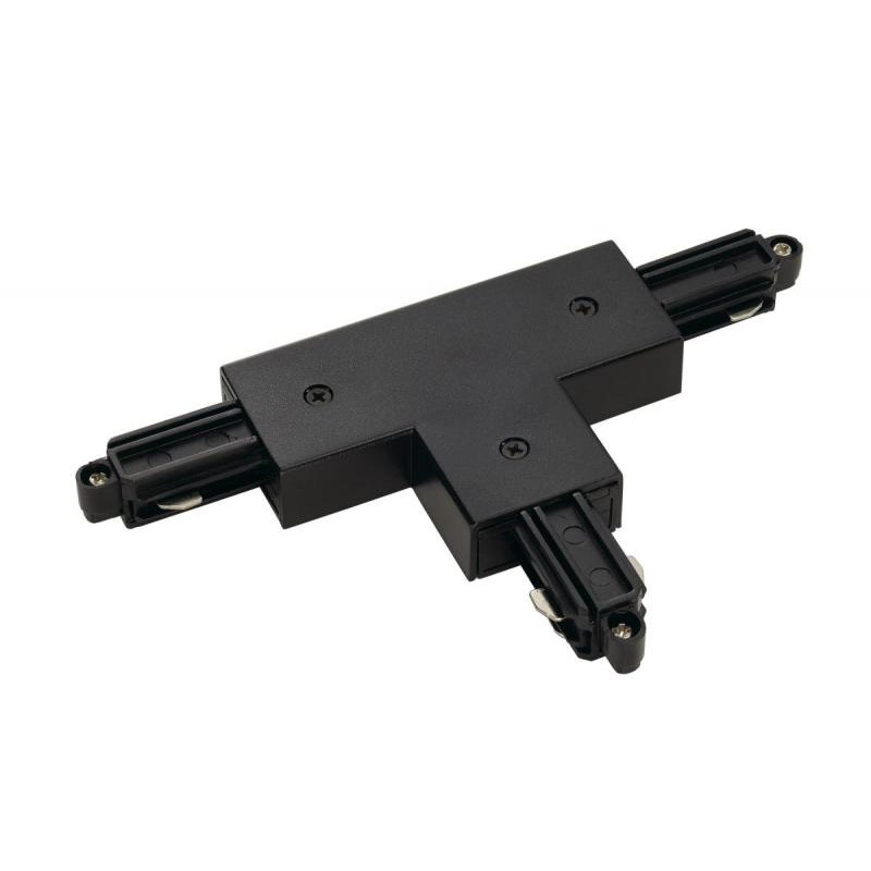 Emballage :1/100Description: Connecteur en T pour rail conducteur HT monophasé, modèle de montage apparent, terre à l'extérieur, gauche, noir
