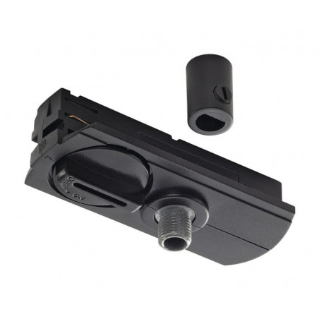 Emballage :1/80Description: ADAPTATEUR POUR SUSPENSION À TIGE, pour rail apparent monophasé 230 V, noir, serre-câbles et raccord fileté incl.