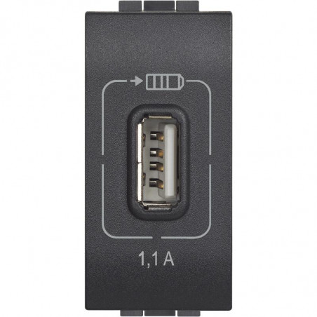 Description: LivingLight chargeur USB 1.1 Ampère en couleur anthracite et largeur de 1 module