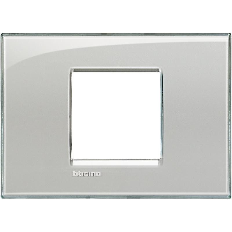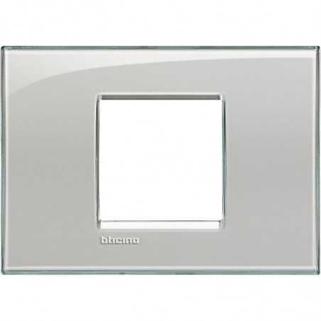 Description: LIVING LIGHT - installation de boite d'encastrement italienne - plaque large recatangle - 2 modules - cold grey