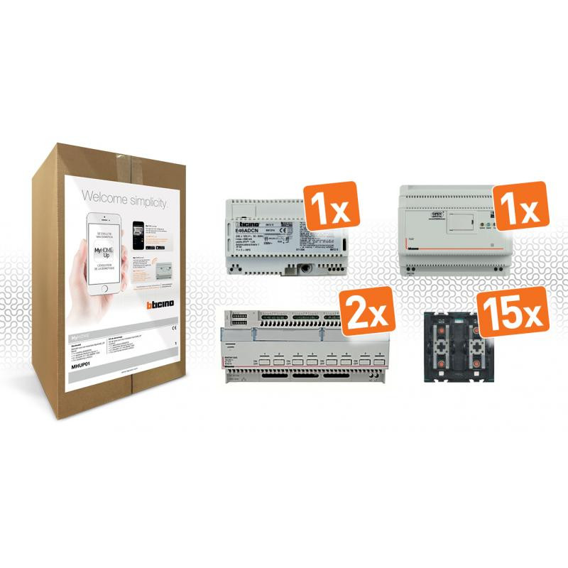Description: MyHOMEUp - Kit de demarrage avec alimentation de base 2 x actuateurs BMSW1005 la passerelle Myhomeserver1 15x commandede base L46522