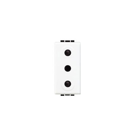 Description: Prise Light - 2P+T - norme italienne - 250 V - 16 A - entraxe 26 mm - contacts protégés diamètre 5 mm - 1 module