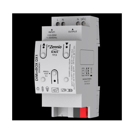 Description: Variateur universel (RLC, LED, CFL) pour rail DIN (2 unités)1 canal 350 W à 230 VAC (200 W à 110 VAC)Pas de charge minimaleDétection automatique de charge (RLC)Courbes de variation pour LED et CFL configurablesContrle manuel10 fonctions logiques indépendantesDétection de court-circuit, panne d'alimentation, surtension, surchauffe, fréquence anormaleDimensions 67 x 90 x 39mmRail DIN 2 modules