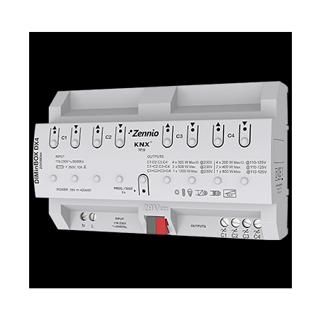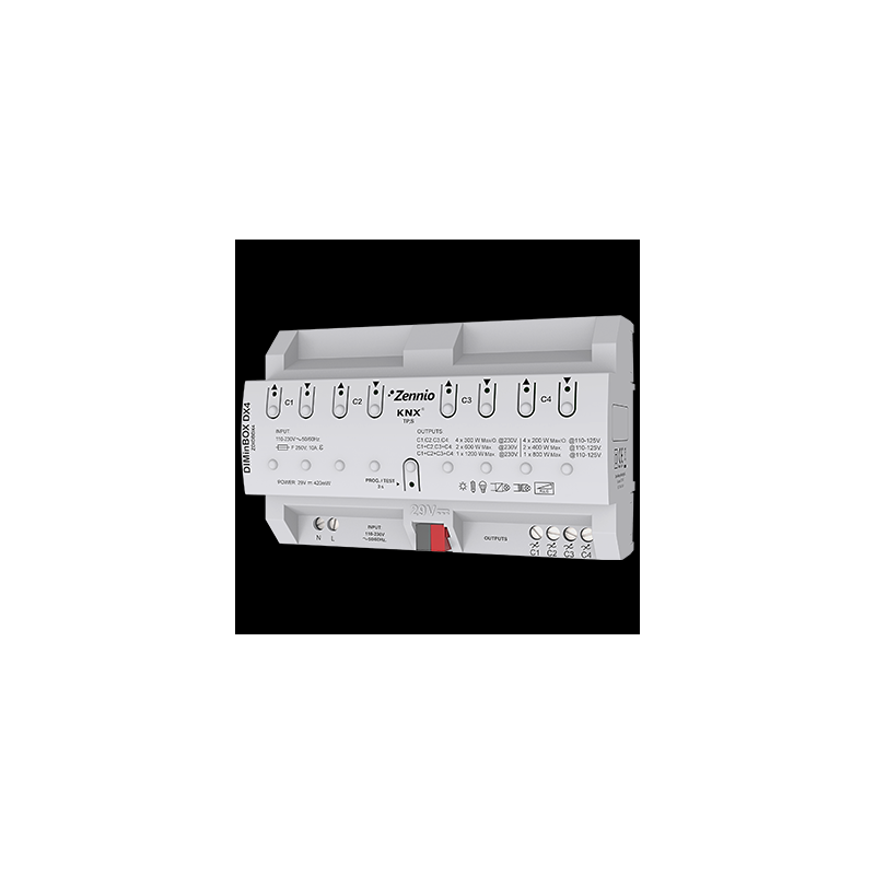 Description: Variateur universel (RLC, LED, CFL) pour rail DIN (8 unités)4 canaux 300 W à 230 VAC (200 W à 110 VAC)Canal double jusqu'à 600 W à 230 VAC (400 W à 110 VAC)Canal quadruple jusqu'à 1200 W à 230 VAC (800 W à 110 VAC)Pas de charge minimaleDétection automatique de charge (RLC)Courbes de variation pour LED et CFL configurablesContrle manuel10 fonctions logiques indépendantesDétection de court-circuit, panne d'alimentation, surtension, surchauffe, fréquence anormaleDimensions 67 x 90 x 140mm